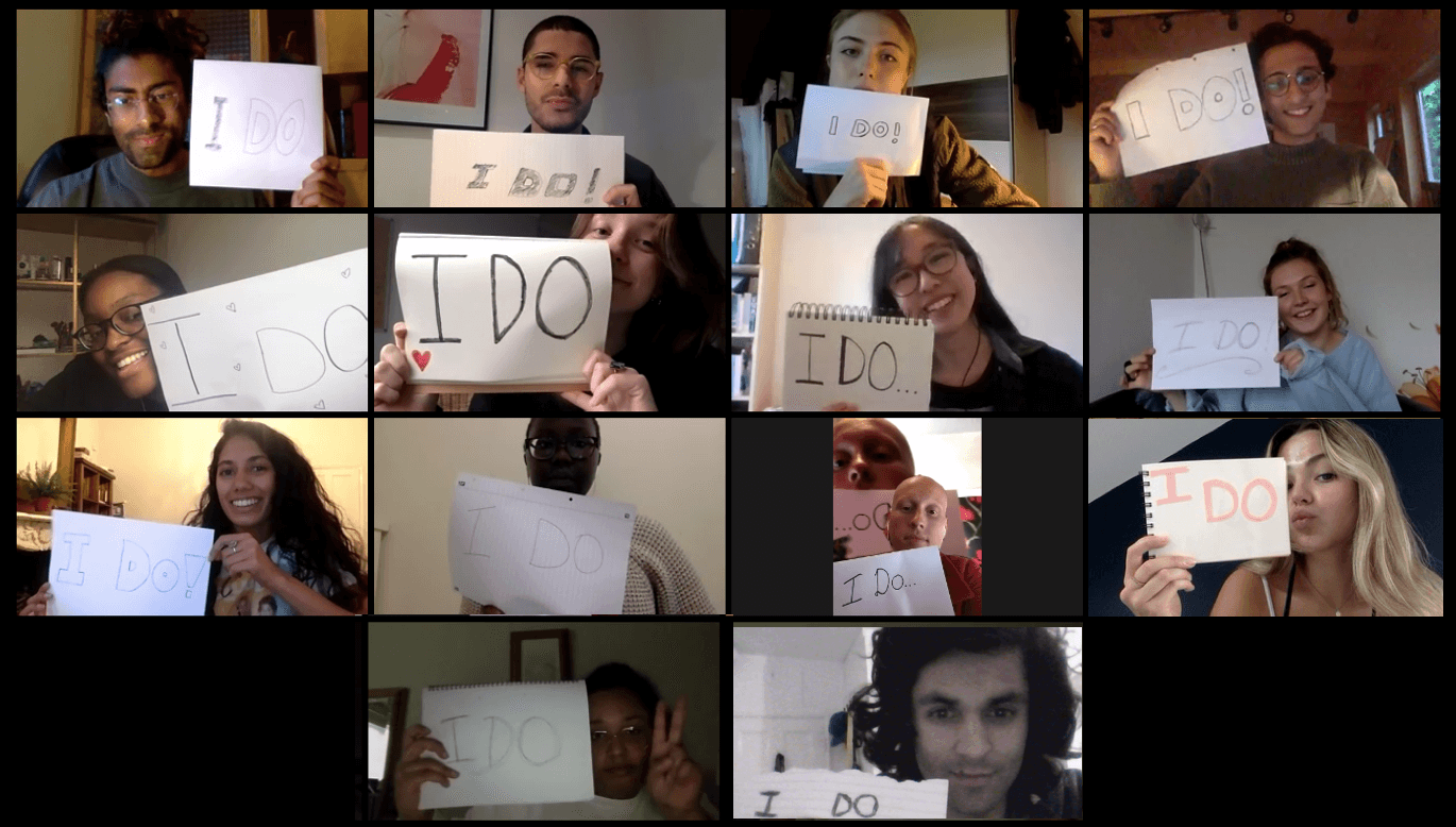 Kiln Theatre’s Young Company activity has continued this term, allowing young people to share their thoughts and emotions during the COVID-19 pandemic. In place of our usual showcase in the theatre, our 19-25 Young Company have devised a virtual sharing of their work-in-progress to explore the absurdity, difficulty and beauty of our current existence.