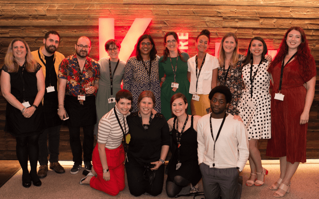 Indhu (Artistic Director), Daisy (Executive Director) and the Kiln Theatre Team