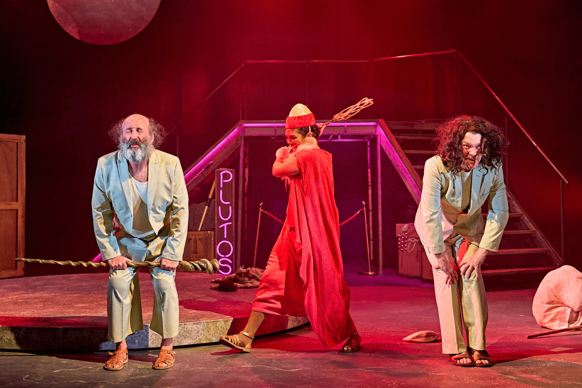 From the UK’s leading physical comedy ensemble Spymonkey comes a delirious trip through Greek theatre, a monster-filled Underworld and classic vaudeville double acts.